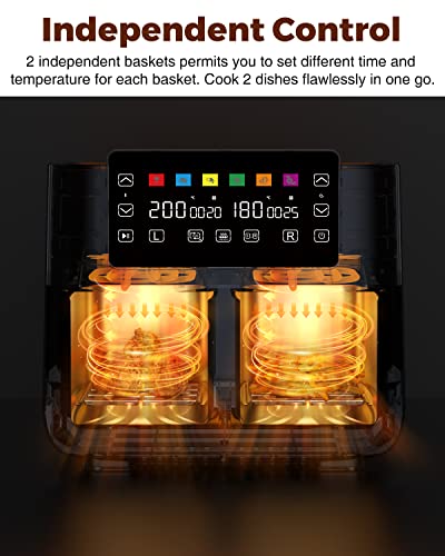 • Cook 2 Dishes at Once - With 2 independent baskets, our XXL air fryer lets you cook 2 different foods simultaneously, saving you time and effort.