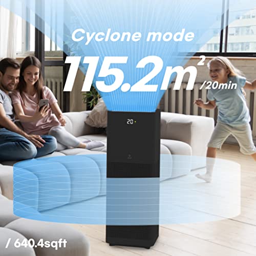 • CYCLONE MODE WITH DUAL-MOTOR FAN: Experience the full power of our dual motor fans quickly and effectively purifying the air. CADR rated for 640 sq.ft coverage. Suitable for large rooms, living rooms, family rooms, kitchens, etc.