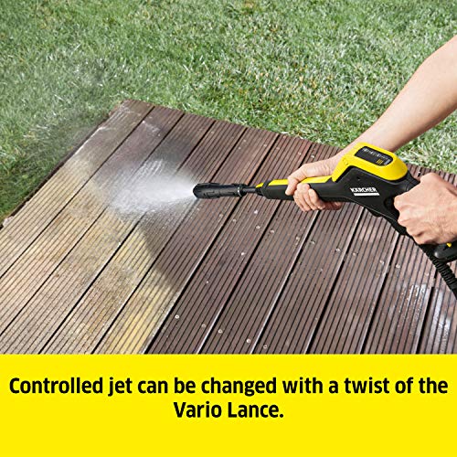 Details: Whatever the cleaning job, the powerful Kärcher K 5 Power Control pressure washer gives you the perfect pressure . Whether you're cleaning the car or shifting stubborn dirt off the patio, the K 5 Power Control makes light work of any cleaning job. Switch effortlessly between tasks with the 3-in-1 Multi Jet lance, designed to save you time while achieving sparkling results. Simply flick between Vario, Dirt blaster and detergent settings to move from one surface to another. For mess-free cleaning, the Plug 'n' Clean detergent system works with the lance to help you apply detergent simply and efficiently as you go along. This sturdy machine has a telescopic handle that makes it easy to move around with you, and it won't fall over thanks to its stable design. The lance, trigger gun and hose pack neatly away into on-board storage when you're done, and you can look forward to years of great performance from its state-of-the-art water-cooled motor. Always have Kärcher on hand with the Kärcher App, it contains everything you need from setting up your machine to step by step application guides.