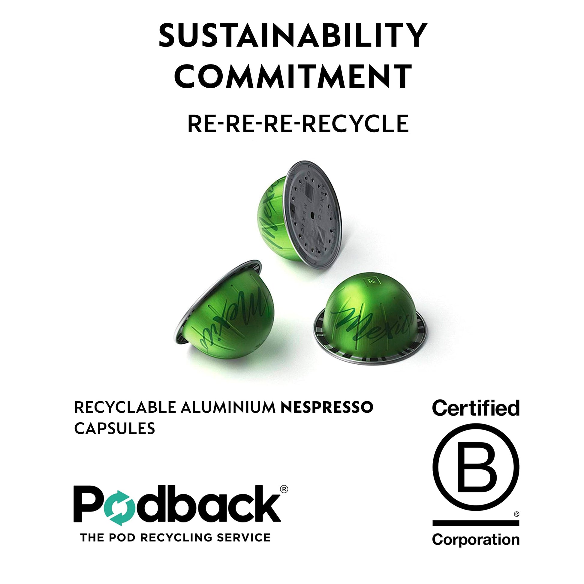 • A+ ENERGY CONSUMPTION - Certified B Corporation, Nespresso Vertuo pods are made with 80% recycled material and are fully recyclable; Energy-saving automatic switch off after non-use