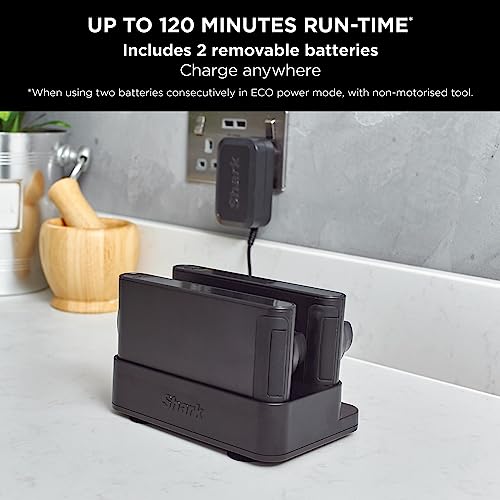 • 2 REMOVABLE BATTERIES: Enjoy up to 120 minutes run-time* and charge the removable batteries on or off the vacuum (*When using two batteries consecutively in ECO power mode, with non-motorised tool).