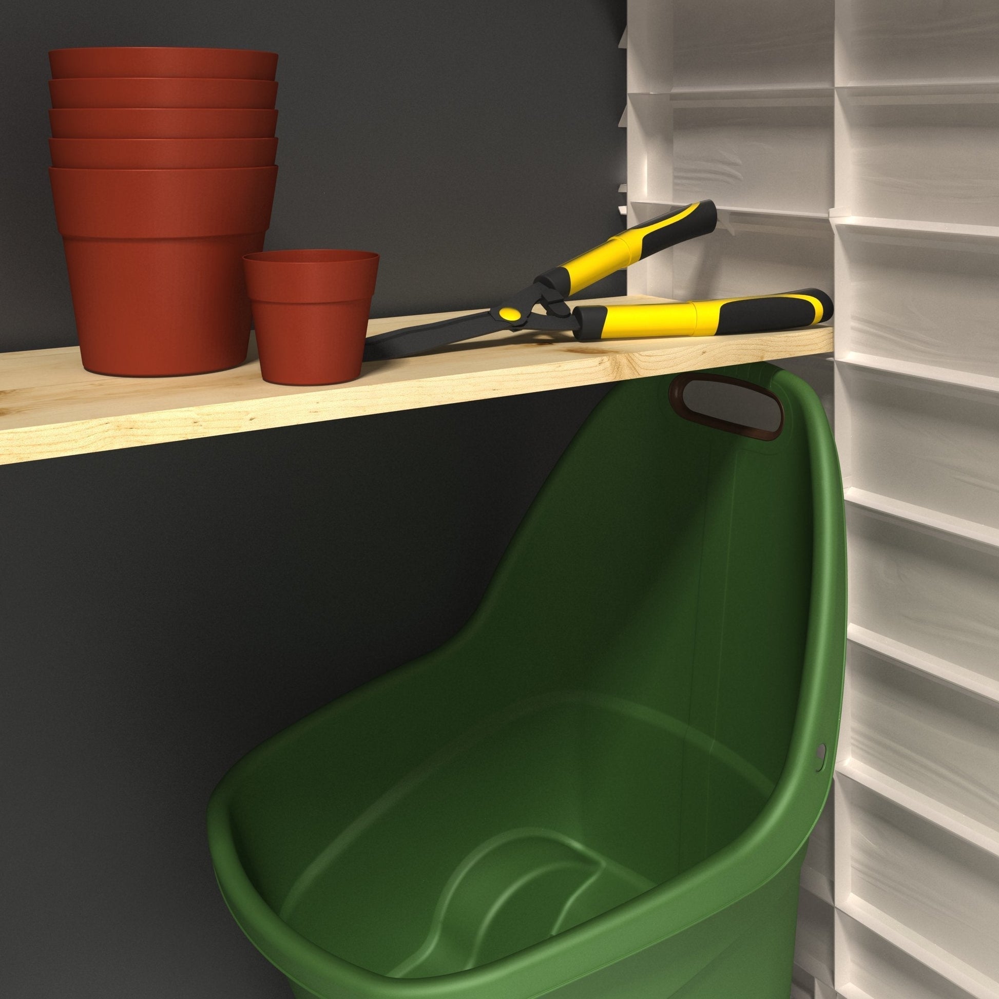 The Store-it-out Max is the all-purpose outdoor storage box, ideal for garden tools, mowers and other equipment, garden furniture and cushions, wheelie bins and others. Providing dry and ventilated storage, it features a piston-assisted lid and two wide opening doors for easy access to contents. There are also two lid-lifter chains included to facilitate hands-free opening of wheelie bins stored inside.